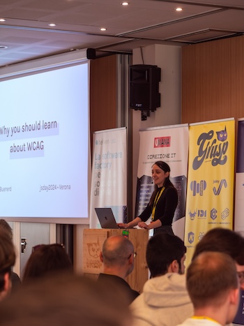 I speak frequently about accessibility. My favorite topics are intermediate to advanced topics, like making complex standards like WCAG easier to understand, diving into a specific topic like keyboard accessibility or manual testing, as well as good practices for coding accessible websites.